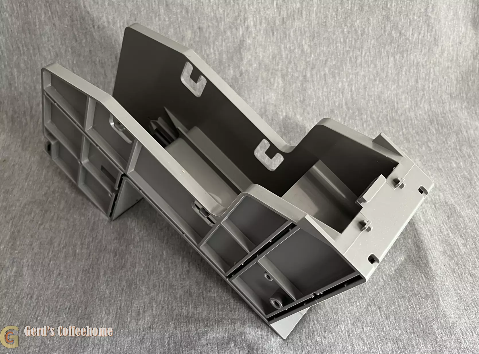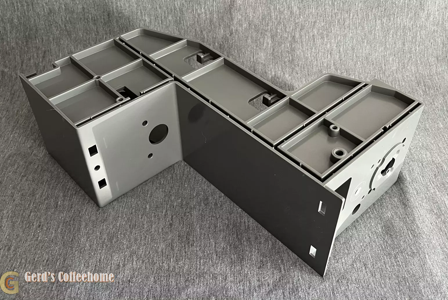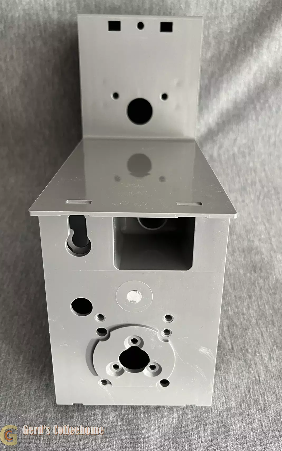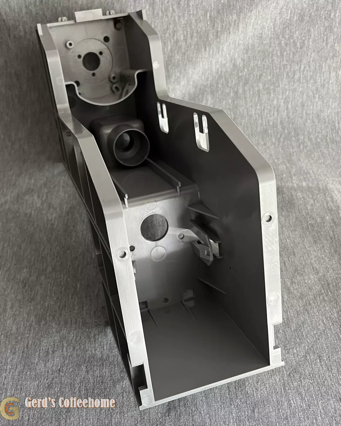 Dieses Gehäuseteil dient zur Aufnahme des Mixer- und Produktmotors, sowie Instant-Produktbehälters. Ferner ist ein Anschluss für den PVC-Schlauch zum Lüfter für die Absaugung vorhanden.