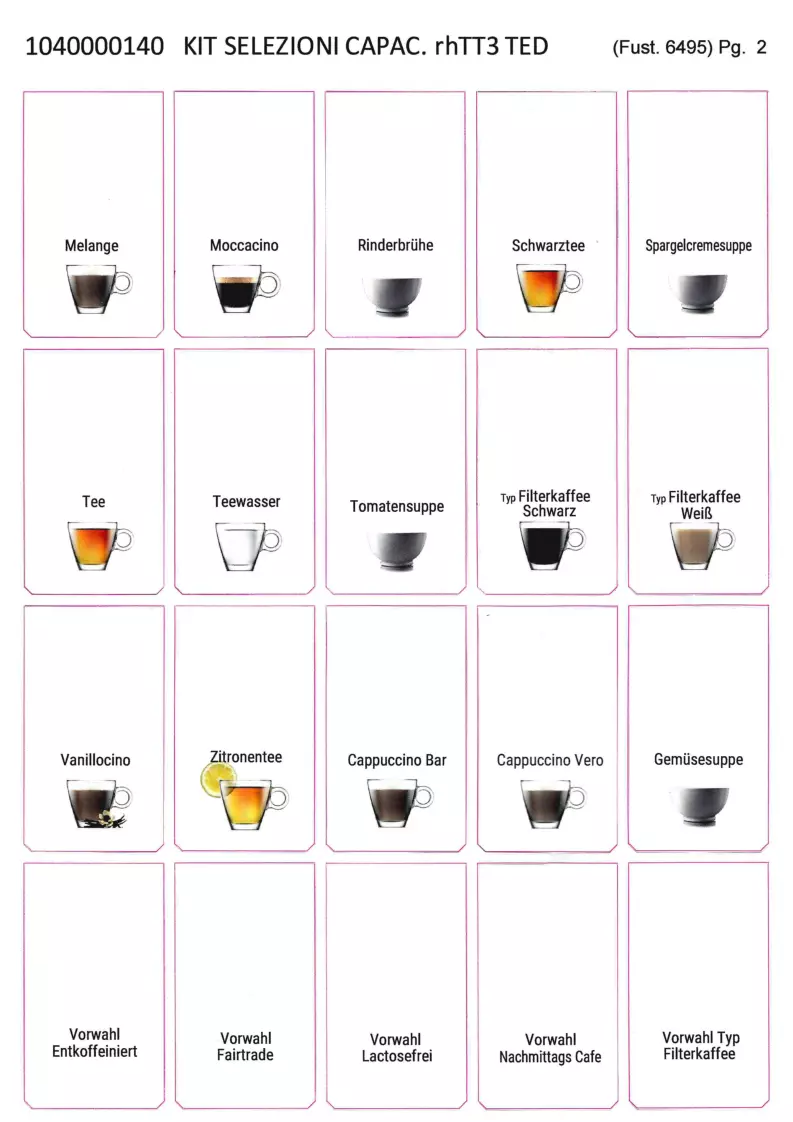 In diesem Set finden Sie auf vier Bögen insgesamt 100 Produktschilder. Von diesen Produktschildern sind 83 x Getränkesymbol mit Text 15 x Text für Vorwahlen 2 x leere Schilder