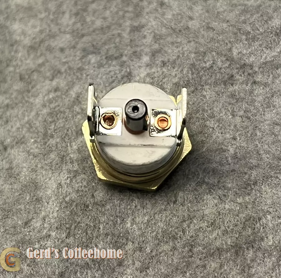 Sofern die Temperatur im Boiler zu hoch wird, unterbricht dieser StB die Stromzufuhr zum Heizelement. Nachdem das Wasser im Boiler etwas abgekühlt ist, kann der Sicherheitstemperaturbegrenzer wieder durch Drücken des Knopfs zwischen den Anschlüssen aktiviert werden.